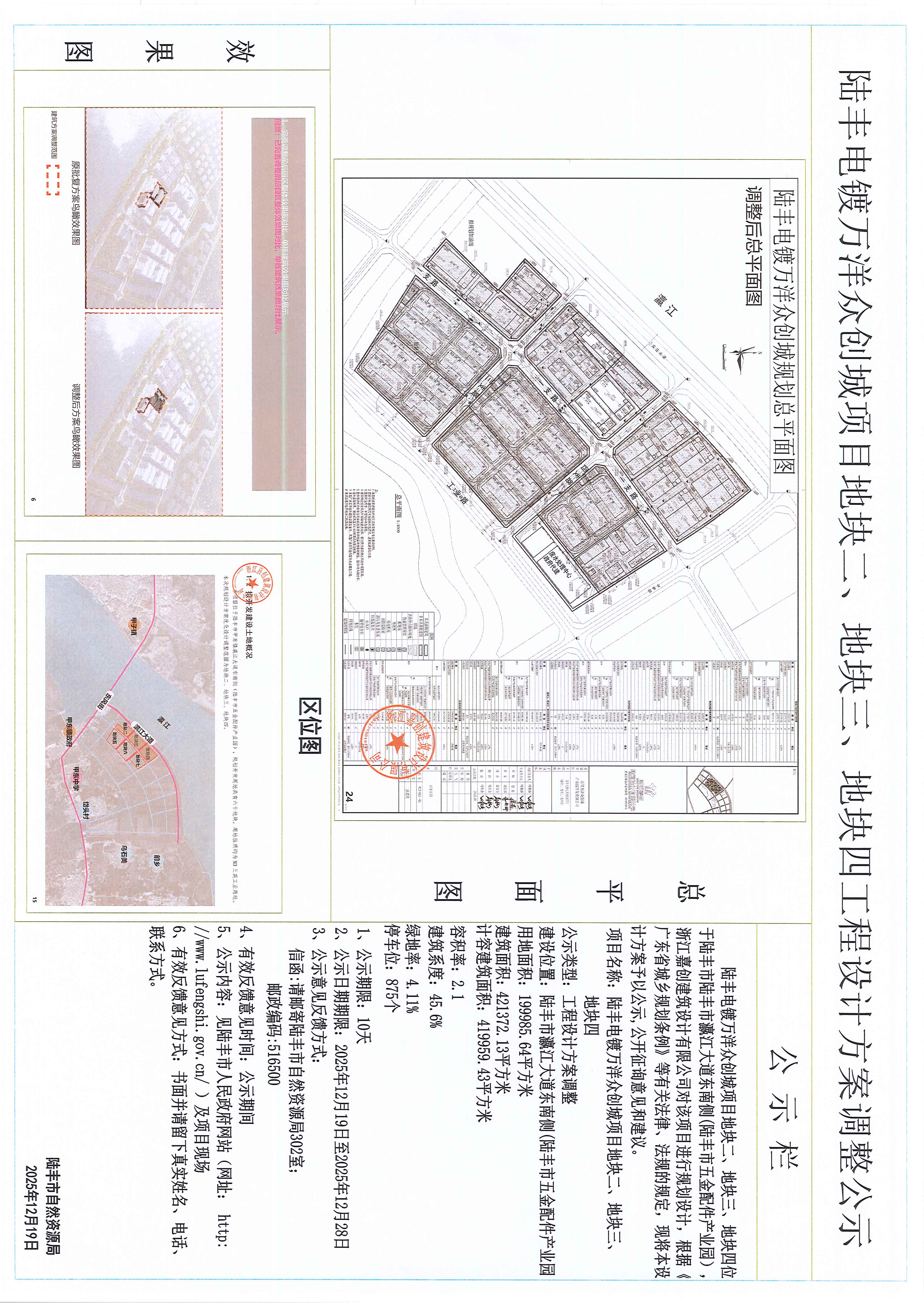 陸豐電鍍?nèi)f洋眾創(chuàng)城項(xiàng)目地塊二、地塊三、地塊四工程設(shè)計(jì)方案調(diào)整公示