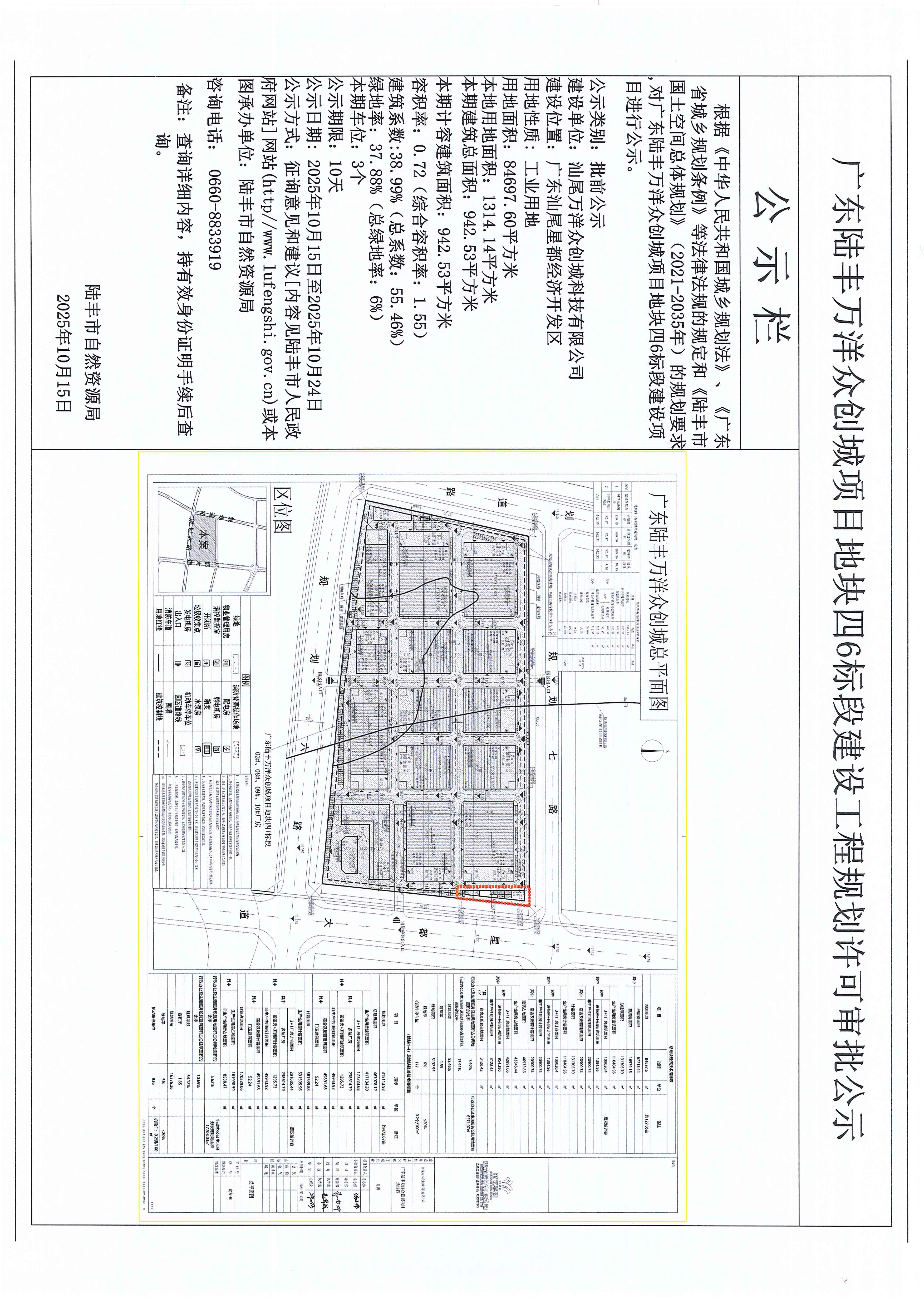廣東陸豐萬(wàn)洋眾創(chuàng)城項(xiàng)目地塊四6標(biāo)段建設(shè)工程規(guī)劃許可審批公示