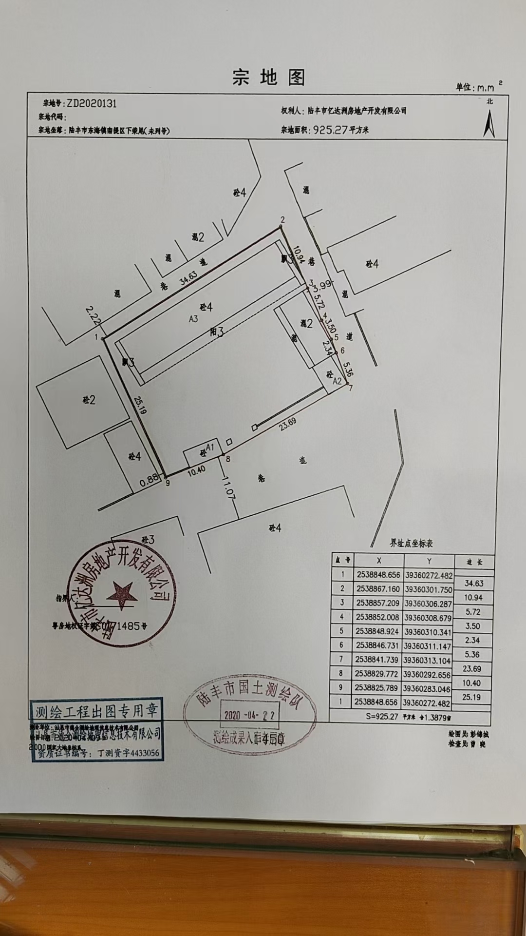 陸豐市億達(dá)洲房地產(chǎn)開發(fā)有限公司位于陸豐市東海鎮(zhèn)南小區(qū)下榮尾(未列號),土地面積:925.27平方米,其四至:東至巷道;西至公留通風(fēng)巷;南至巷道;北至巷道(以宗地圖為準(zhǔn))。