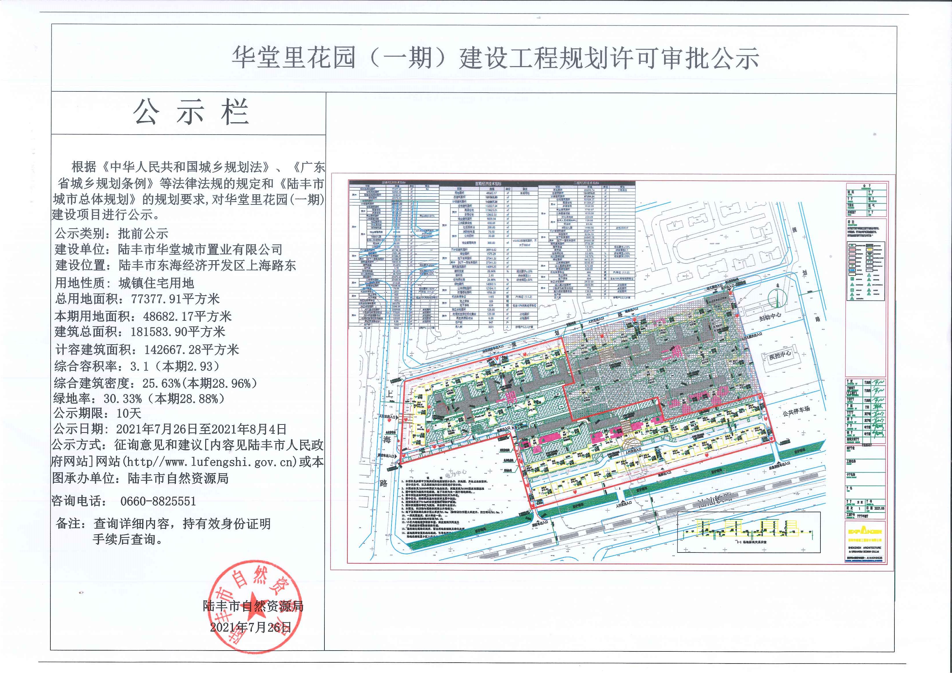華堂里花園(一期)建設(shè)工程規(guī)劃許可審批公示