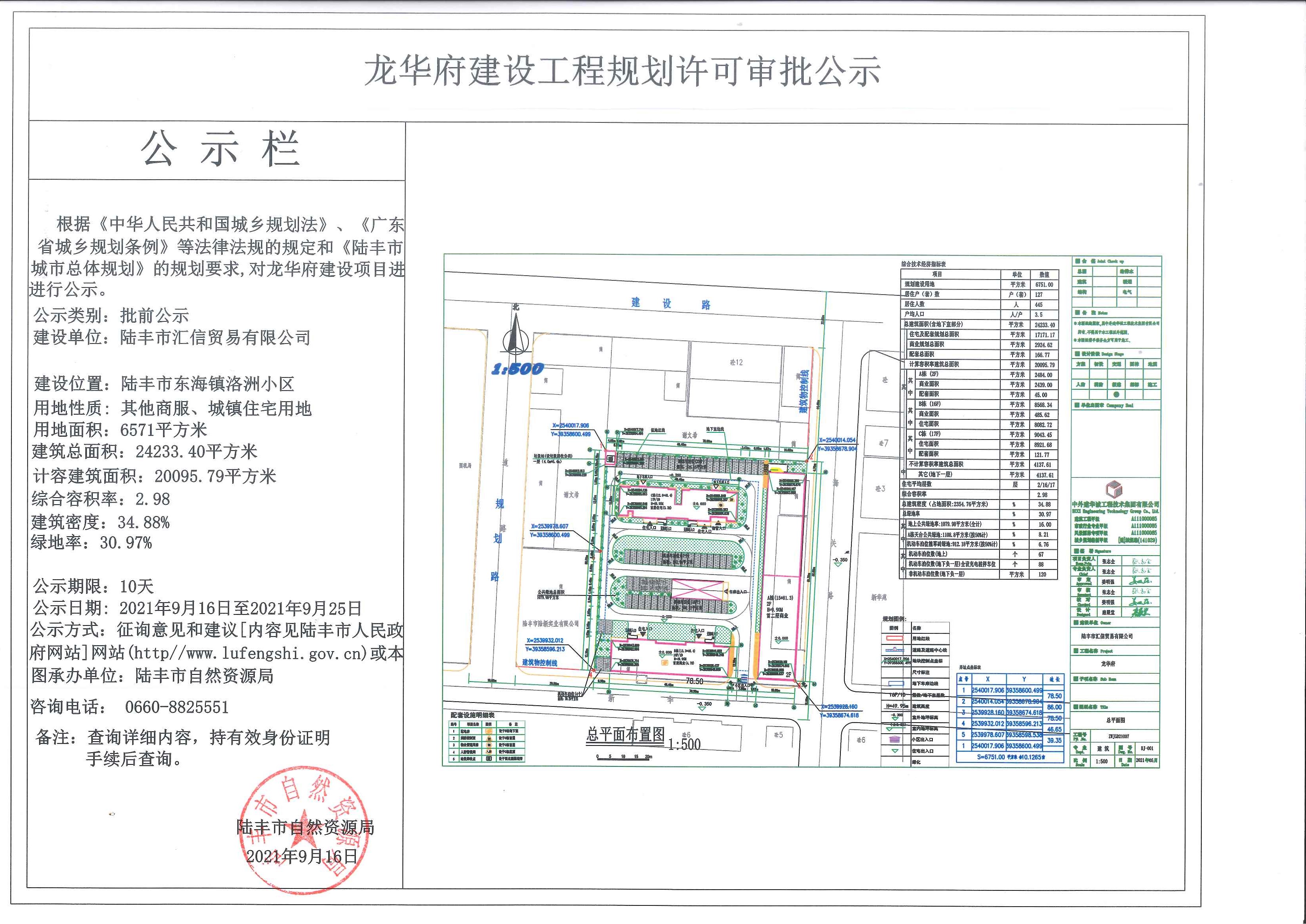 龍華府建設(shè)工程規(guī)劃許可審批公示