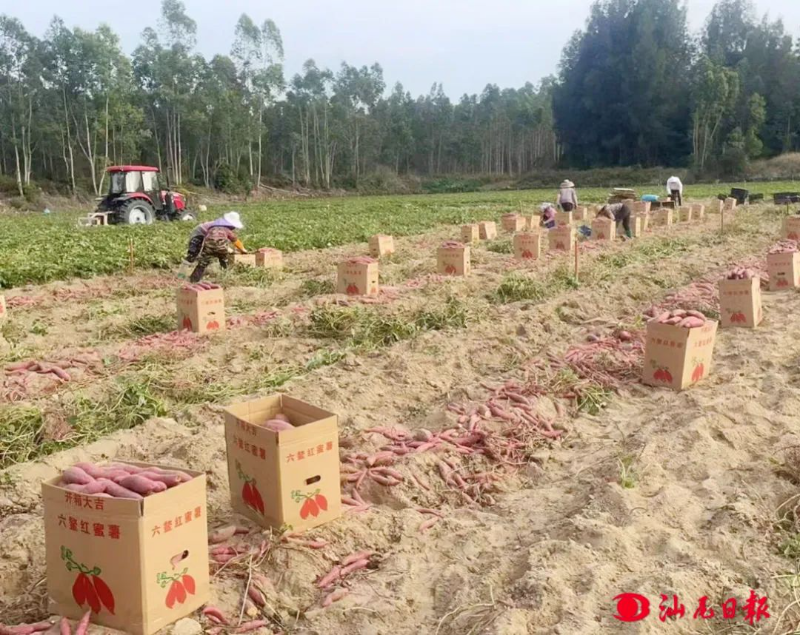 陸豐市大力發(fā)展特色產(chǎn)業(yè)。圖為農(nóng)戶忙著將甘薯分類、裝箱