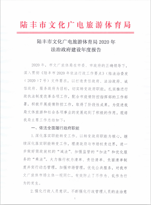 陸豐市文化廣電旅游體育局2020年法治政府建設年度報告