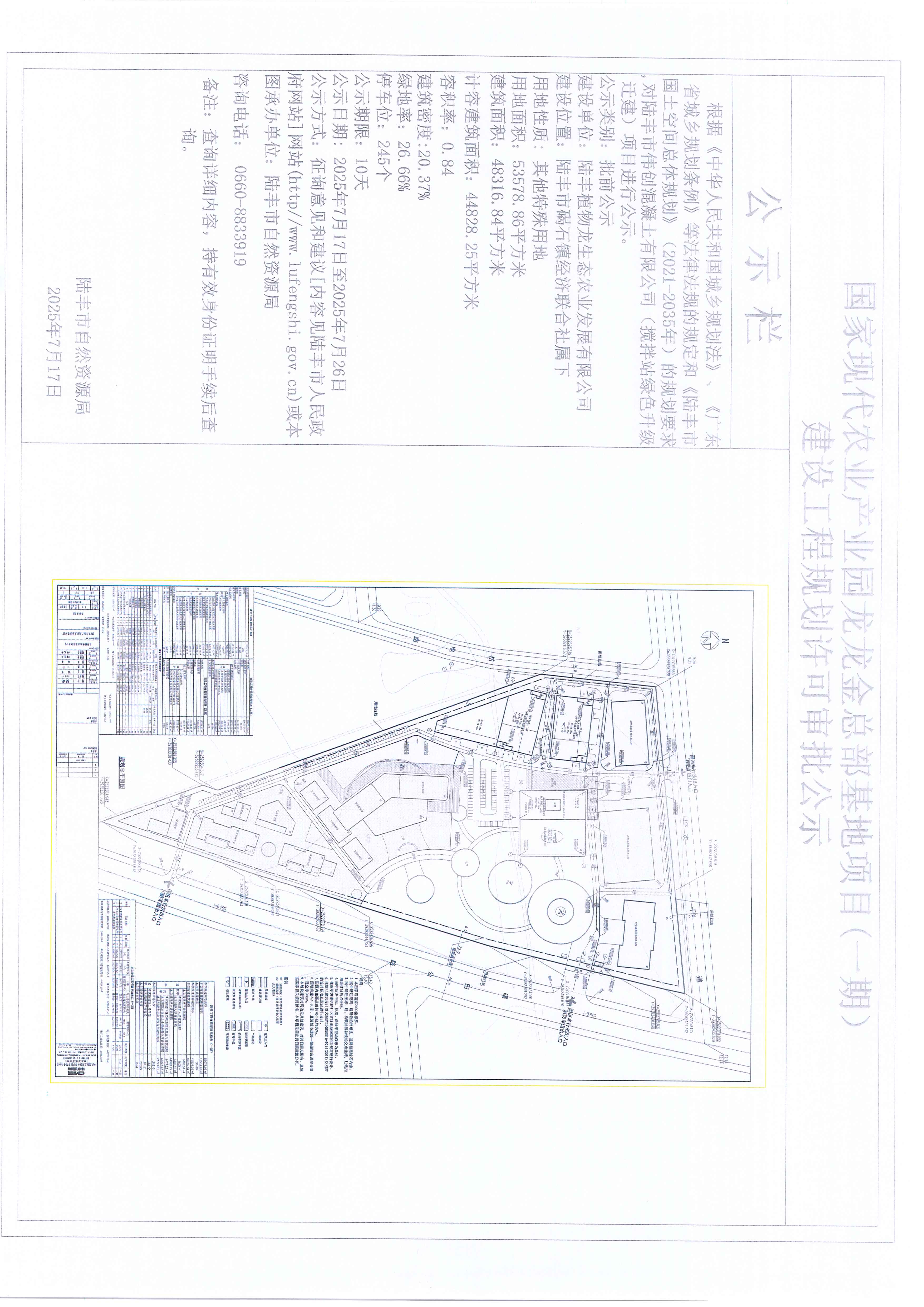 國家現代農業(yè)產業(yè)園龍龍金總部基地項目(一期)建設工程規(guī)劃許可審批公示