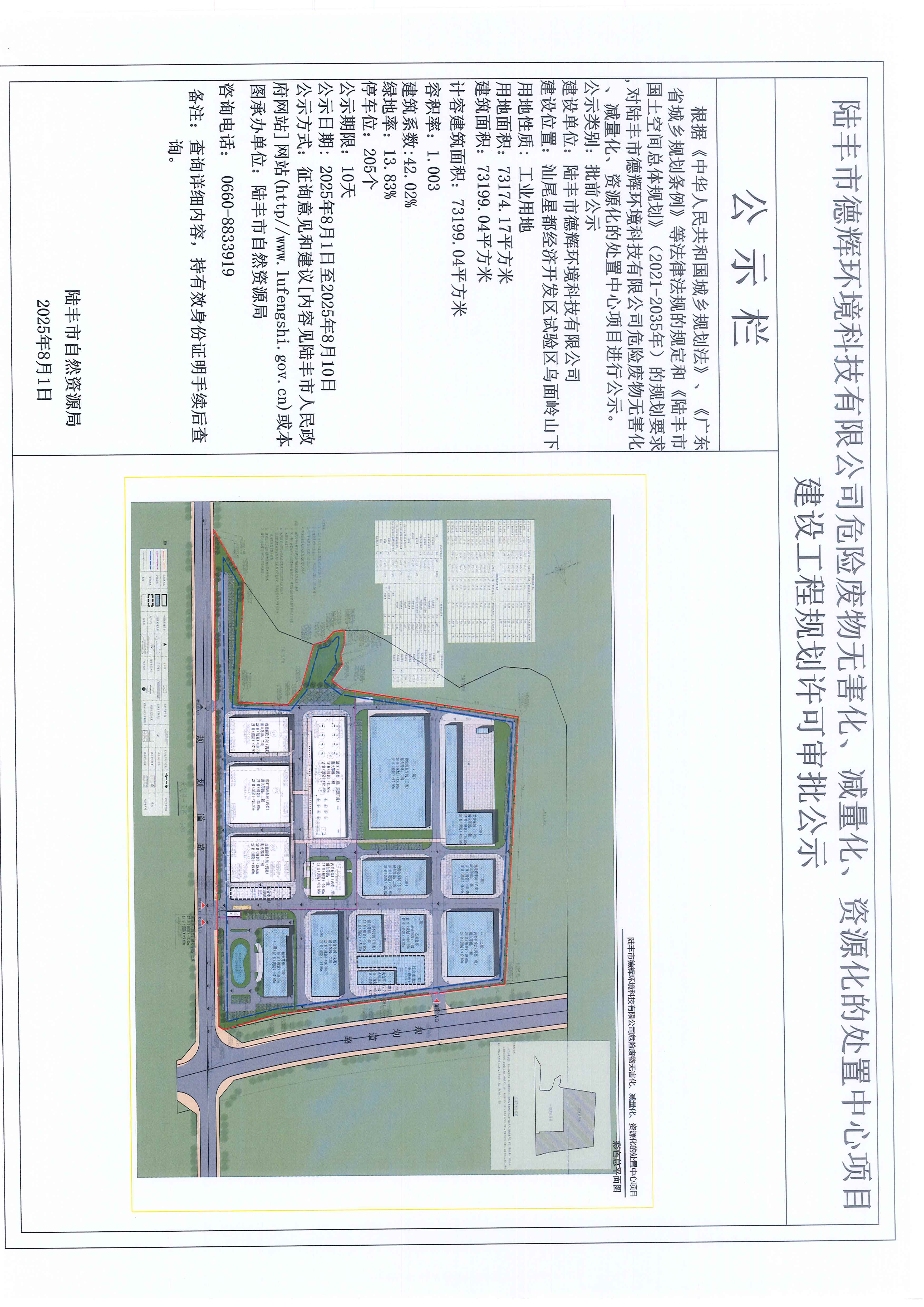 陸豐市德輝環(huán)境科技有限公司危險(xiǎn)廢物無害化、減量化、資源化的處置中心項(xiàng)目建設(shè)工程規(guī)劃許可審批公示