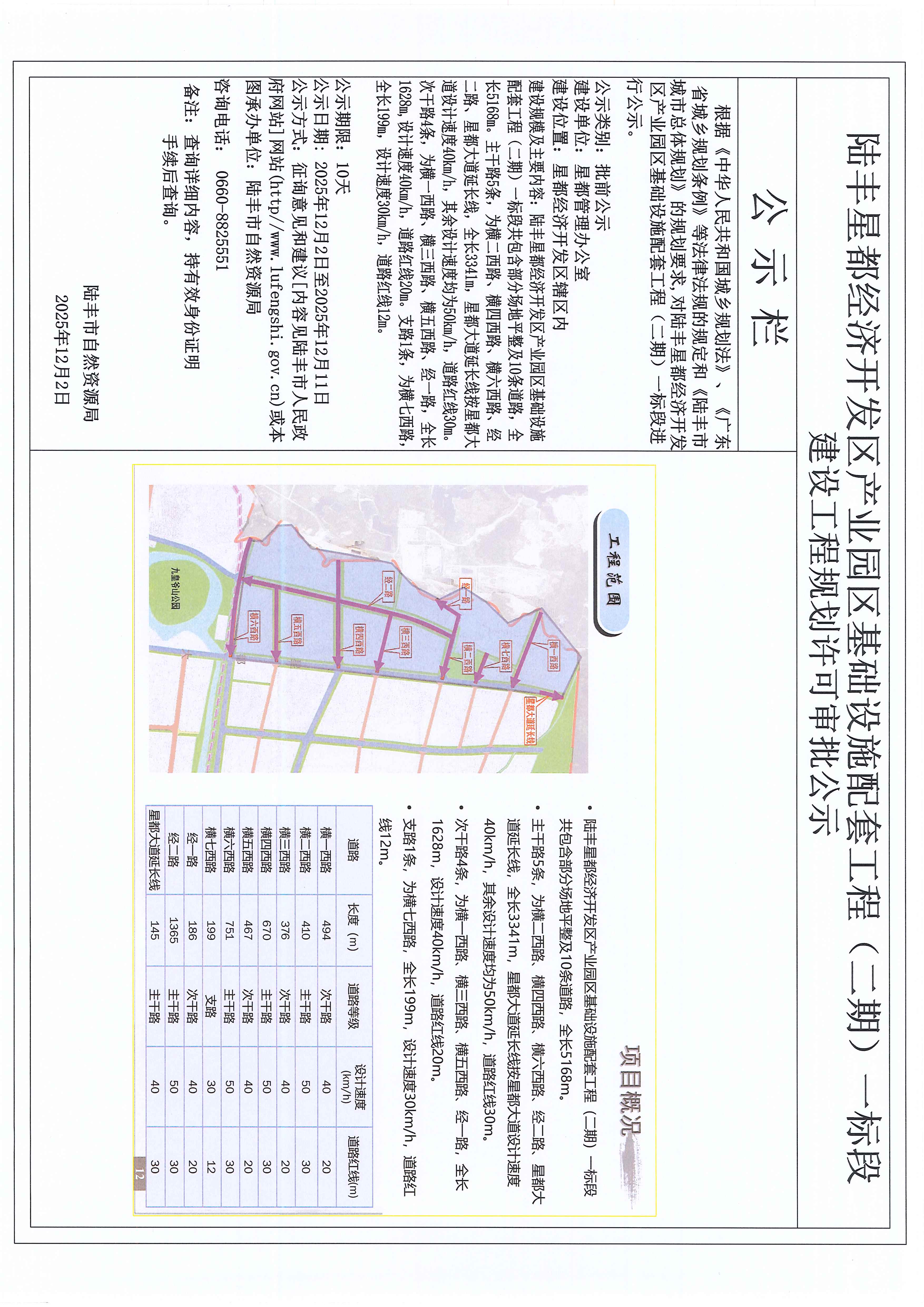陸豐星都經(jīng)濟(jì)開發(fā)區(qū)產(chǎn)業(yè)園區(qū)基礎(chǔ)設(shè)施配套工程(二期)一標(biāo)段建設(shè)工程規(guī)劃許可審批公示